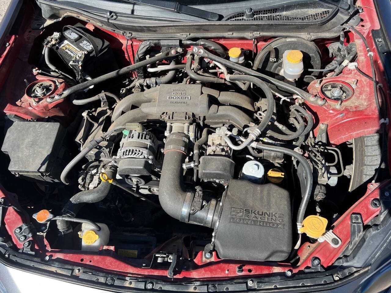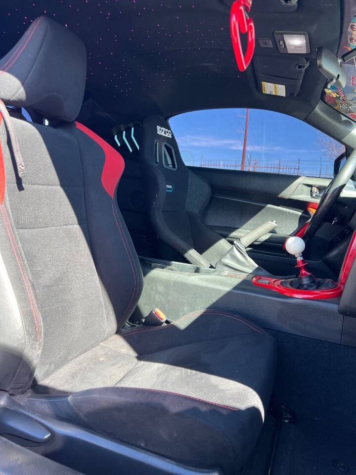 Step inside and you’ll be greeted by a spacious and modern interior. The front seats are bolstered for ultimate comfort and support, while the leather-wrapped steering wheel adds a touch of luxury. The FR-S Base also comes equipped with a 6.1-inch touchscreen display, Bluetooth connectivity, and USB/AUX inputs, making it easy to stay connected on the go.