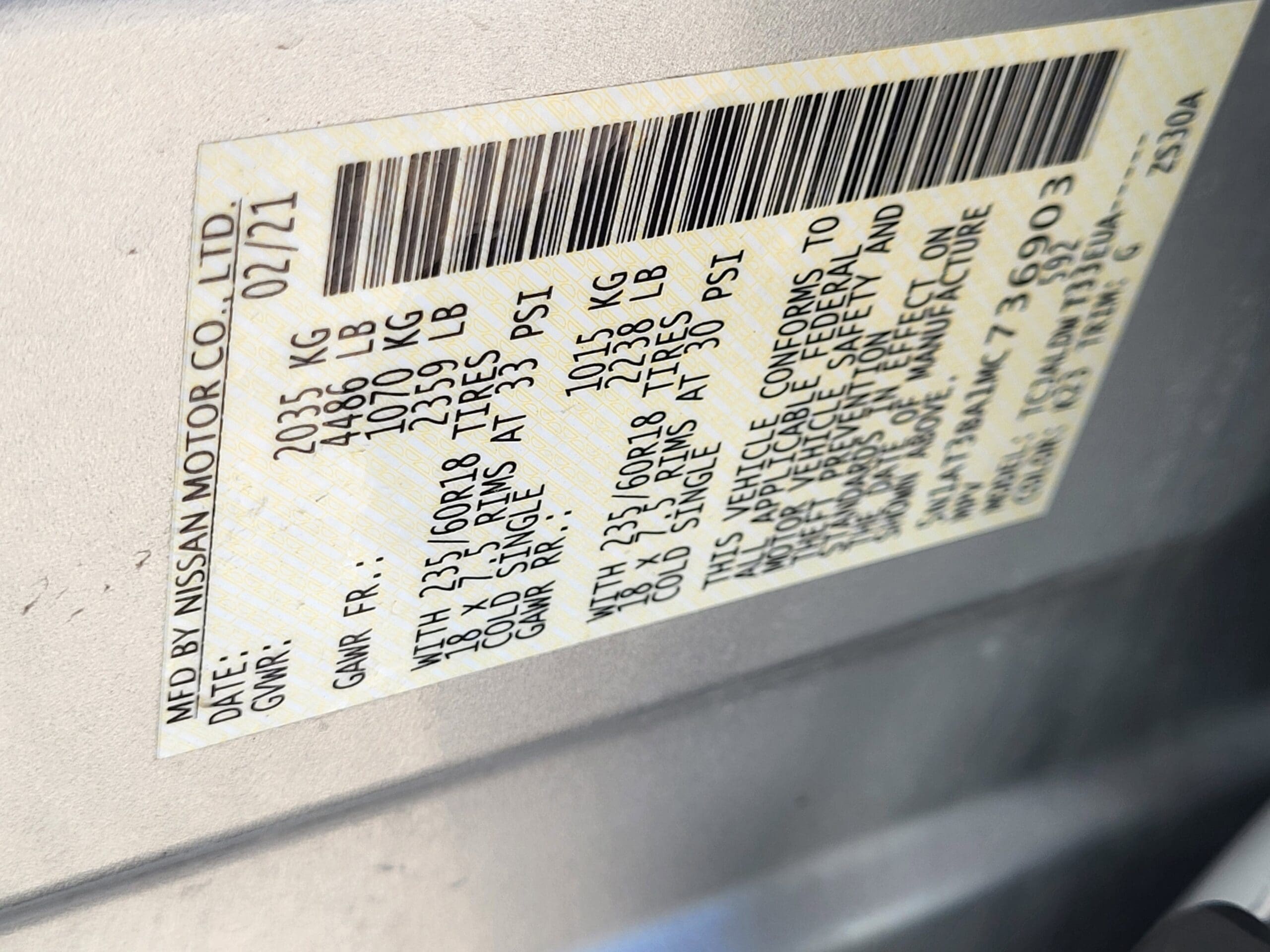 | VIN | 5N1AT3BA1MC736903 |