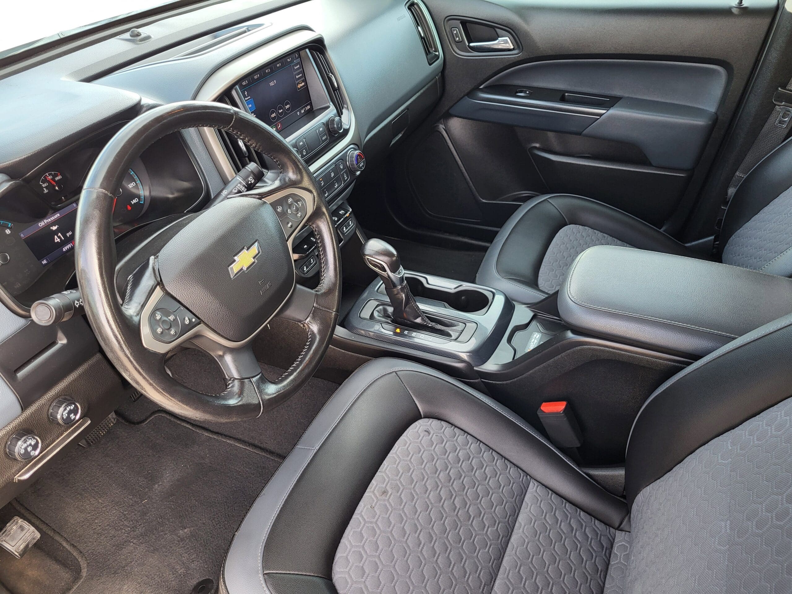 Exterior@Black Bowtie, (front grille)~Exterior@Bumper, rear body-color~Exterior@Capless Fuel Fill (Not available with (LWN) 2.8L Duramax Turbo-Diesel engine.)~Exterior@Cargo box light, back of cab~Exterior@CornerStep, rear bumper~Exterior@Door handles, Black painted~Exterior@Exterior, B-pillar applique~Exterior@Fog lamps, front~Exterior@Headlamps, projector-type~Exterior@Hood Insulator~Exterior@Mirror, spotter located in corner of driver-side outside mirror~Exterior@Mirrors, outside heated power-adjustable, body-color, manual-folding (Includes Black mirror caps.)~Exterior@Moldings, Black beltline~Exterior@Tailgate handle, Black~Exterior@Tailgate, EZ-Lift and Lower~Exterior@Tailgate, remote locking (locks and unlocks with key fob)~Exterior@Tire, spare 255/65R17 all-season, blackwall~Exterior@Tires, 255/65R17 all-terrain, blackwall~Exterior@Wheel, spare, 17 x 8 (43.2 cm x 20.3 cm) steel~Exterior@Wheels, 17 x 8 (43.2 cm x 20.3 cm) Bright Machined aluminum~Exterior@Window, rear-sliding, manual~Interior@Air conditioning, single-zone automatic climate control~Interior@Audio system feature, 6-speaker system~Interior@Audio system, Chevrolet Infotainment 3 Plus system 8 diagonal HD color touchscreen, AM/FM stereo, Bluetooth audio streaming for 2 active devices, Apple CarPlay and Android Auto capable, voice recognition, in-vehicle apps, cloud connected personalization for select infotainment and vehicle settings. Subscription required for enhanced and connected services after trial period~Interior@Chevrolet Connected Access capable (Subject to terms. See onstar.com or dealer for details.)~Interior@Console, floor, front compartment, custom~Interior@Console, overhead~Interior@Cruise control, electronic, automatic~Interior@Defogger, rear-window electric~Interior@Display, driver instrument information enhanced, multi-color~Interior@Door locks, power~Interior@Floor covering, color-keyed carpeting~Interior@Floor mats, carpeted front (Removed when the following options are ordered: (AAK) All-weather floor liner, LPO, (RIA) All-weather floor liner, LPO, (VAV) All-weather floor mats, LPO, (PDH) Interior Protection Package, LPO or (PDN) Z71 Midnight Edition.)~Interior@Floor mats, carpeted rear (Removed when the following options are ordered: (AAK) All-weather floor liner, LPO, (RIA) All-weather floor liner, LPO, (VAV) All-weather floor mats, LPO, (PDH) Interior Protection Package, LPO or (PDN) Z71 Midnight Edition.)~Interior@Handles, door release, front and rear, Chrome~Interior@HD Radio~Interior@Lighting, interior, dual reading~Interior@Lighting, interior, roof, rear courtesy and dual reading lights (Crew Cab models only.)~Interior@Microphones, Driver side and Passenger side~Interior@Mirror, inside rearview auto-dimming~Interior@Remote Keyless Entry, extended range~Interior@Remote vehicle starter system~Interior@Seat adjuster, driver 6-way power~Interior@Seat adjuster, passenger 2-way manual fore/aft with manual recline~Interior@Seat adjuster, power driver lumbar control~Interior@Seat trim, Cloth/Leatherette~Interior@Seat, rear folding bench (Crew Cab models only.)~Interior@Seats, front bucket~Interior@Seats, heated driver and front passenger (Vehicles built prior to 11-15-2021 and on or after 2-21-2022 through 3-13-2022 and after 5-2-2022 include heated driver and front passenger seats. Vehicles built between 11-15-2021 and 2-20-2022 and on or after 3-14-2022 and before 5-2-2022 will be forced to include (00V) Not Equipped with Heated Front Seats, which removes heated front seats. See dealer for details or the window label for the features on a specific vehicle. Feature will not function on certain models without later dealer retrofit, see dealer for details.)~Interior@SiriusXM Radio enjoy a Platinum Plan trial subscription with over 150 channels including commercial-free music, plus sports, news and entertainment. Plus listening on the SiriusXM app, online and at home on compatible connected devices is included, so you’ll hear the best SiriusXM has to offer, anywhere life takes you. Welcome to the world of SiriusXM. (IMPORTANT: The SiriusXM radio trial package is not provided on vehicles that are ordered for Fleet Daily Rental (FDR) use. If you decide to continue service after your trial, the subscription plan you choose will automatically renew thereafter and you will be charged according to your chosen payment method at then-current rates. Fees and taxes apply. See the SiriusXM Customer Agreement at www.siriusxm.com for complete terms and how to cancel. All fees, content, features, and availability are subject to change.)~Interior@Speedometer, miles/kilometers~Interior@Steering column, tilt and telescopic~Interior@Steering wheel controls, mounted audio controls~Interior@Steering wheel, heated~Interior@Steering wheel, leather-wrapped~Interior@Theft-deterrent system, immobilization~Interior@Theft-deterrent system, unauthorized entry~Interior@USB charging-only ports 2, located on the rear of the center console~Interior@USB data ports, 2 includes auxiliary input jack, located on the front console (Not available with (IOU) 8 diagonal Chevrolet Infotainment System with Navigation.)~Interior@Visors, driver and front passenger illuminated sliding vanity mirrors~Interior@Wi-Fi Hotspot capable (Terms and limitations apply. See onstar.com or dealer for details.)~Interior@Windows, power with driver Express-Up and Down~Mechanical@Brakes, 4-wheel antilock, 4-wheel disc~Mechanical@Differential, automatic locking rear~Mechanical@Engine, 3.6L DI DOHC V6 VVT (308 hp [230.0 kW] @ 6800 rpm, 275 lb-ft of torque [373 N-m] @ 4000 rpm)~Mechanical@Four wheel drive~Mechanical@Frame, fully-boxed~Mechanical@GVWR, 6000 lbs. (2722 kg) (Standard on Crew Cab models with (LGZ) 3.6L DI DOHC V6 engine only.)~Mechanical@Hill Descent Control~Mechanical@Hitch Guidance dynamic single line to aid in truck trailer alignment for hitching~Mechanical@Pickup box~Mechanical@Rear axle, 3.42 ratio~Mechanical@Recovery hooks, front~Mechanical@Steeri
