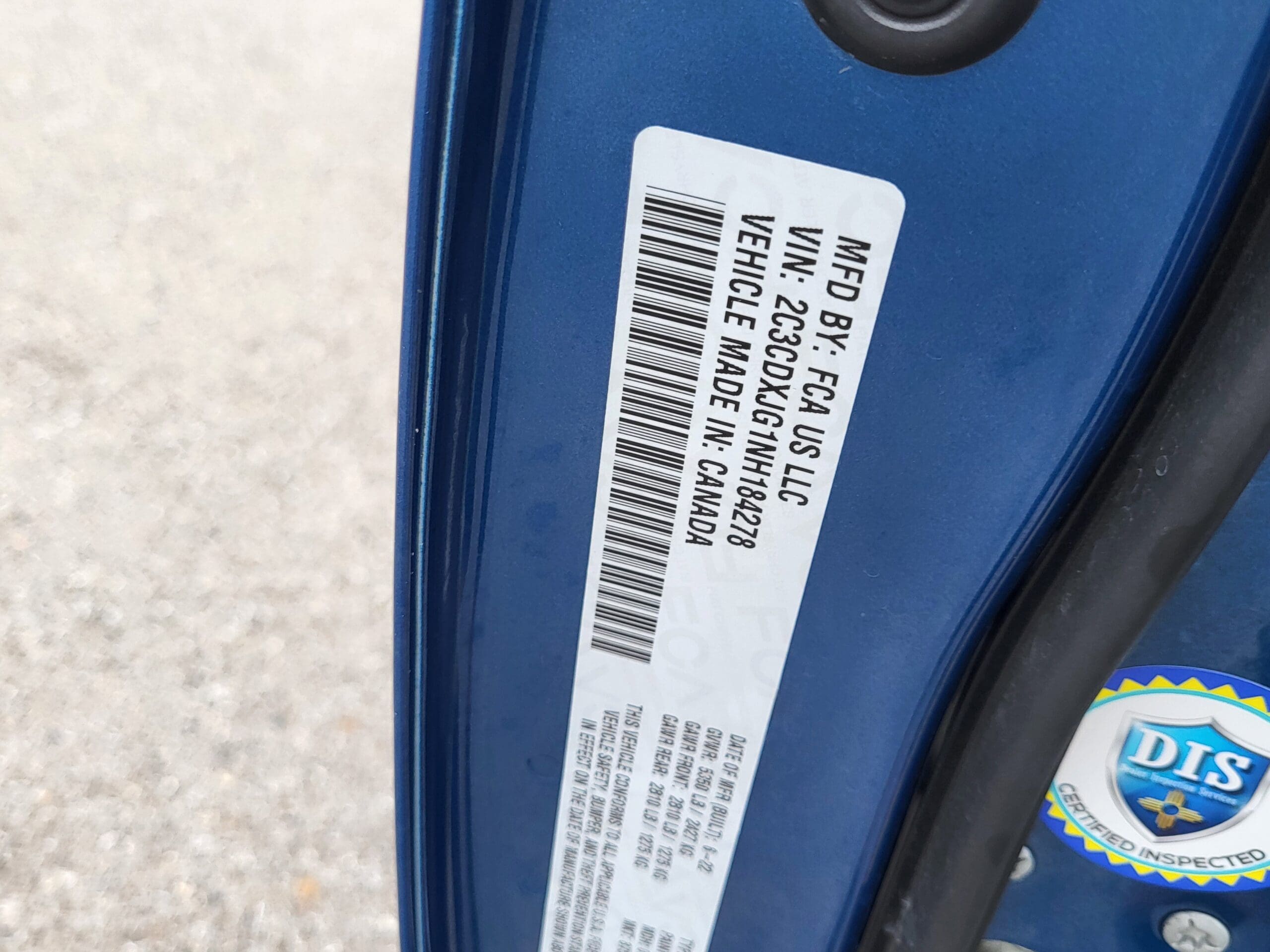 VIN | 2C3CDXJG1NH184278 |