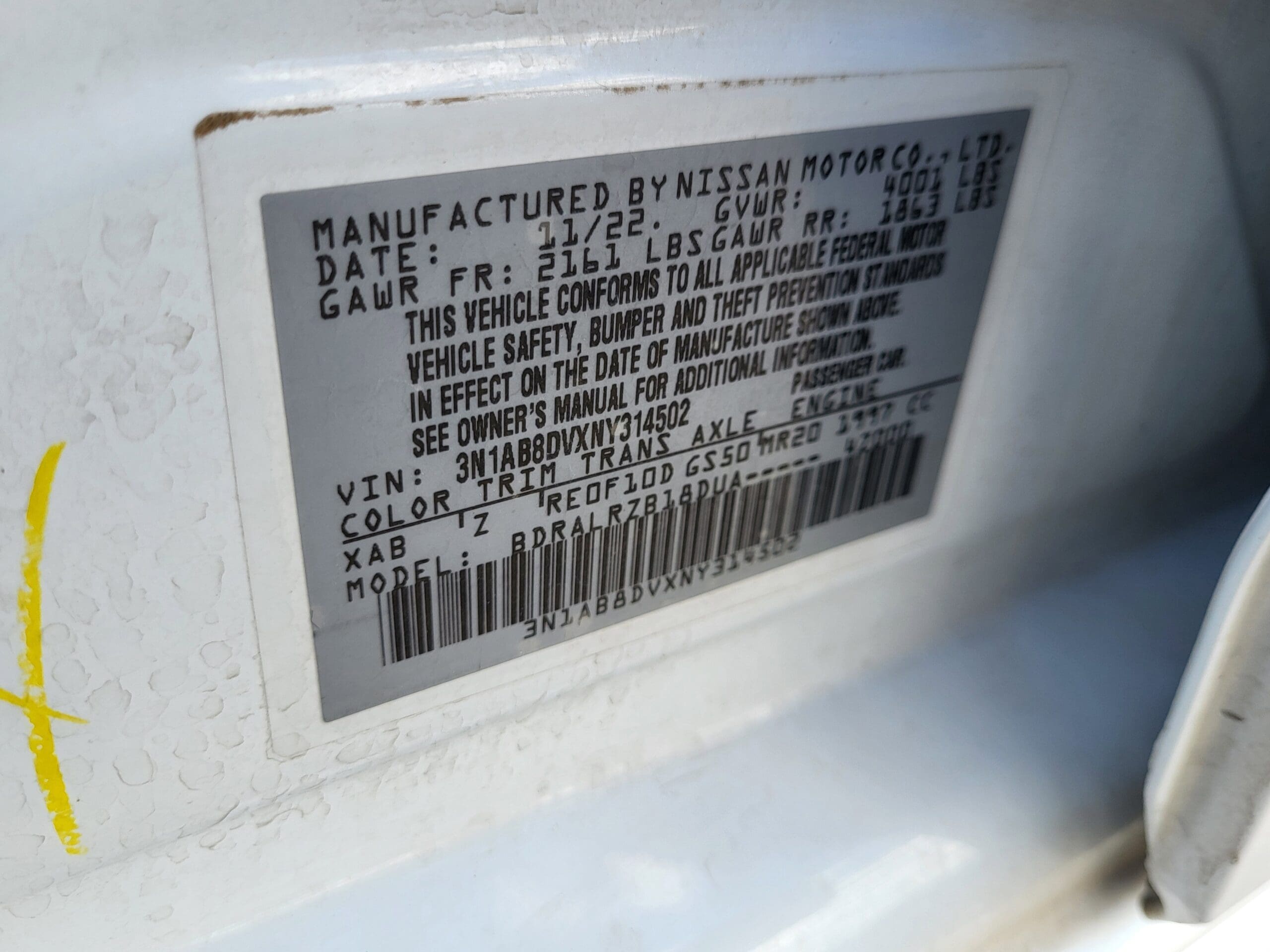 | VIN | 3N1AB8DVXNY314502 |