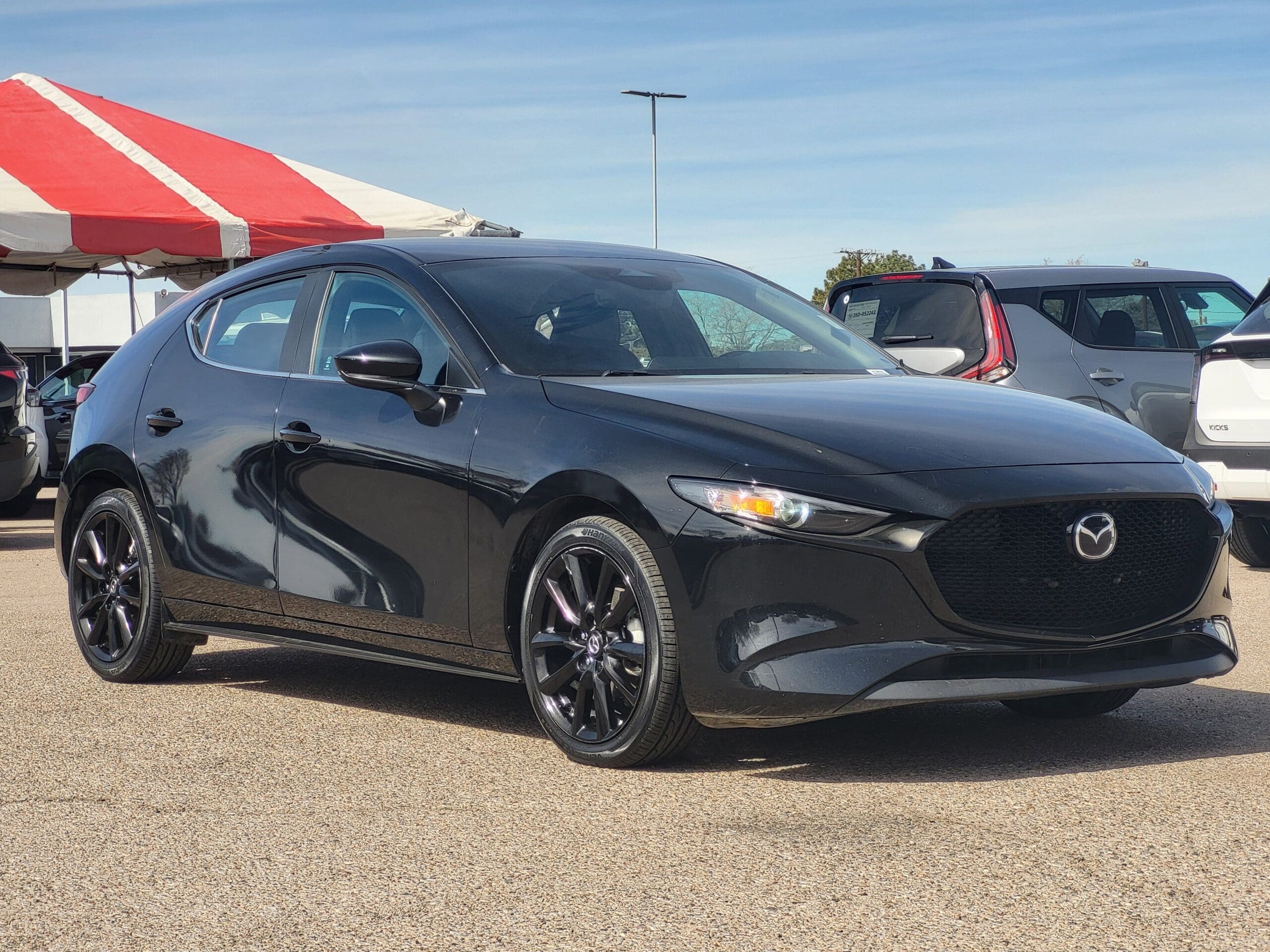 Exterior@Auto On/Off Projector Beam Led Low/High Beam Auto High-Beam Daytime Running Lights Preference Setting Headlamps w/Delay-Off~Exterior@Black Grille~Exterior@Black Power Heated Side Mirrors w/Manual Folding and Turn Signal Indicator~Exterior@Body-Colored Door Handles~Exterior@Body-Colored Front Bumper w/Black Bumper Insert~Exterior@Body-Colored Rear Bumper w/Black Rub Strip/Fascia Accent~Exterior@Chrome Side Windows Trim and Black Front Windshield Trim~Exterior@Compact Spare Tire Mounted Inside Under Cargo~Exterior@Fixed Rear Window w/Wiper and Defroster~Exterior@Fully Galvanized Steel Panels~Exterior@Headlights-Automatic Highbeams~Exterior@LED Brakelights~Exterior@Liftgate Rear Cargo Access~Exterior@Light Tinted Glass~Exterior@Lip Spoiler~Exterior@Perimeter/Approach Lights~Exterior@Rain Detecting Variable Intermittent Wipers~Exterior@Steel Spare Wheel~Exterior@Tailgate/Rear Door Lock Included w/Power Door Locks~Exterior@Tires: P215/45R18 All-Season~Exterior@Wheels: 18 x 7J Aluminum Alloy -inc: black metallic finish~Interior@2 LCD Monitors In The Front~Interior@6 Speakers~Interior@60-40 Folding Bench Front Facing Fold Forward Seatback Rear Seat~Interior@8-Way Driver Seat~Interior@Air Filtration~Interior@Cargo Space Lights~Interior@Carpet Floor Trim~Interior@Compass~Interior@Cruise Control w/Steering Wheel Controls~Interior@Day-Night Rearview Mirror~Interior@Delayed Accessory Power~Interior@Digital/Analog Appearance~Interior@Driver And Passenger Visor Vanity Mirrors w/Driver And Passenger Illumination, Driver And Passenger Auxiliary Mirror~Interior@Driver Foot Rest~Interior@Driver Information Center~Interior@Dual Zone Front Automatic Air Conditioning~Interior@Fade-To-Off Interior Lighting~Interior@FOB Controls -inc: Keyfob Window Activation~Interior@Front Bucket Seats -inc: 6-way manual adjustable driver’s seat w/seat lifter, 4-way manual adjustable front passenger seat and height-adjustable headrests~Interior@Front Cupholder~Interior@Front Map Lights~Interior@Full Carpet Floor Covering -inc: Carpet Front And Rear Floor Mats~Interior@Full Cloth Headliner~Interior@Full Floor Console w/Covered Storage and Mini Overhead Console w/Storage~Interior@Gauges -inc: Speedometer, Odometer, Engine Coolant Temp, Tachometer, Trip Odometer and Trip Computer~Interior@Glove Box~Interior@HVAC -inc: Underseat Ducts~Interior@Immobilizer~Interior@Instrument Panel Covered Bin, Driver / Passenger And Rear Door Bins~Interior@Interior Trim -inc: Metal-Look Instrument Panel Insert, Piano Black/Metal-Look Door Panel Insert, Piano Black Console Insert, Metal-Look Interior Accents and Leatherette Upholstered Dashboard~Interior@Leather Gear Shifter Material~Interior@Leather Steering Wheel~Interior@Leatherette Door Trim Insert~Interior@Leatherette Seat Trim~Interior@Manual Adjustable Front Head Restraints and Manual Adjustable Rear Head Restraints~Interior@Manual Tilt/Telescoping Steering Column~Interior@MAZDA CONNECT Infotainment System -inc: Mazda Connected Services w/remote control, Mazda Connect Wi-Fi in vehicle Wi-Fi w/2GB/3-month free trial provided by AT&T, remote services (remote engine start, remote lock/unlock, remote hazard light), vehicle status (vehicle status alert), navigation services (vehicle finder and send to car), vehicle connect services (vehicle health report, online update, push notifications, malfunction notification, recall notification), automatic 911 dialing, Mazda road side assistance, voice command, multifunction commander control, radio broadcast data system program information, Pandora internet radio integration, SMS text message audio delivery and reply and E911 automatic emergency notification~Interior@Mazda Radar Cruise Control (MRCC) with Stop & Go~Interior@Mobile Hotspot Internet Access~Interior@Outside Temp Gauge~Interior@Passenger Seat~Interior@Power 1st Row Windows w/Front And Rear 1-Touch Up/Down~Interior@Power Door Locks w/Autolock Feature~Interior@Power Fuel Flap Locking Type~Interior@Power Rear Windows~Interior@Proximity Key For Doors And Push Button Start~Interior@Radio w/Seek-Scan, Clock, Speed Compensated Volume Control and Steering Wheel Controls~Interior@Radio: AM/FM Audio System -inc: 6-speaker audio system w/Mazda Harmonic Acoustics, 8.8 full-color center display, Apple CarPlay and Android Auto integration, Bluetooth hands-free phone and audio capability and USB Type-C audio inputs (2 ports)~Interior@Rear Cupholder~Interior@Remote Keyless Entry w/Integrated Key Transmitter, Illuminated Entry, Illuminated Ignition Switch and Panic Button~Interior@Rigid Cargo Cover~Interior@Seats w/Leatherette Back Material~Interior@Sliding Front Center Armrest and Rear Center Armrest~Interior@Smart Device Integration~Interior@Smart Device Remote Engine Start~Interior@Tracker System~Interior@Trip Computer~Interior@Valet Function~Interior@Window Grid Antenna~Interior@Wireless Phone Connectivity~Mechanical@100 Amp Alternator~Mechanical@13.2 Gal. Fuel Tank~Mechanical@3.85 Axle Ratio~Mechanical@4-Wheel Disc Brakes w/4-Wheel ABS, Front Vented Discs, Brake Assist, Hill Hold Control and Electric Parking Brake~Mechanical@60-Amp/Hr Maintenance-Free Battery w/Run Down Protection~Mechanical@Electric Power-Assist Speed-Sensing Steering~Mechanical@Engine: 2.5L SKYACTIV-G DOHC 16-Valve 4-Cylinder -inc: cylinder deactivation~Mechanical@Front Anti-Roll Bar~Mechanical@Front-Wheel Drive~Mechanical@Gas-Pressurized Shock Absorbers~Mechanical@Quasi-Dual Stainless Steel Exhaust w/Chrome Tailpipe Finisher~Mechanical@Strut Front Suspension w/Coil Springs~Mechanical@Torsion Beam Rear Suspension w/Coil Springs~Mechanical@Transmission w/Driver Selectable Mode~Mechanical@Transmission: 6-Speed SKYACTIV-Drive Automatic -inc: Electronically-controlled, manual-shift and sport mode~Safety@ABS And Driveline Traction Control~Safety@Airbag Occupancy Sensor~Safety@Back-Up Camera~Safety@Blind Spot Monitoring (BSM) Blind Spot~Safety@Collision Mitigation-Front~Safety@Curtain 1st And 2nd Row Airbags~Safety@Driver And Pas