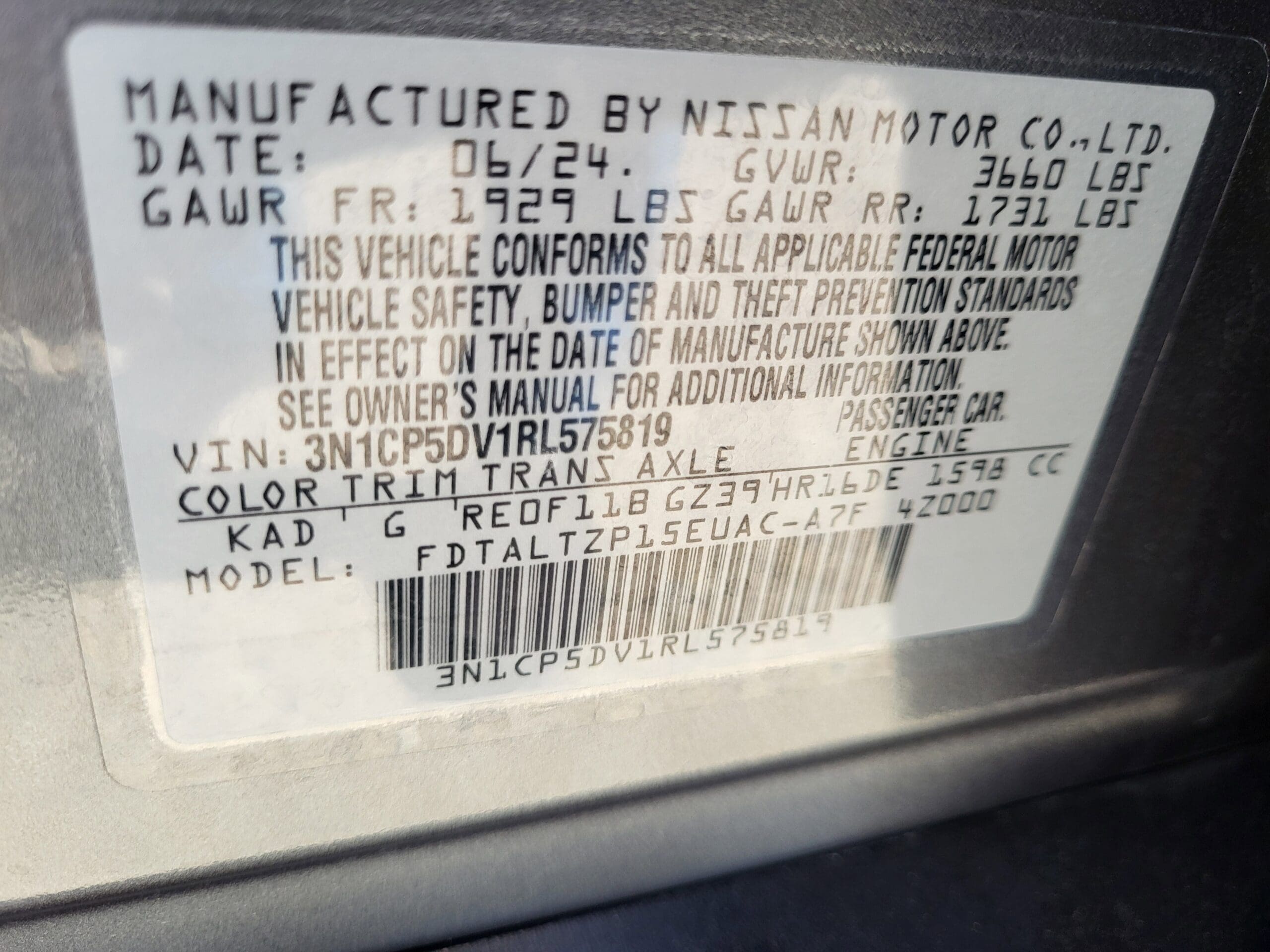 Exterior@Black Power Heated Side Mirrors w/Manual Folding and Turn Signal Indicator~Exterior@Black Side Windows Trim~Exterior@Body-Colored Door Handles~Exterior@Body-Colored Front Bumper w/Black Rub Strip/Fascia Accent and Metal-Look Bumper Insert~Exterior@Body-Colored Rear Bumper w/Black Rub Strip/Fascia Accent~Exterior@Compact Spare Tire Mounted Inside Under Cargo~Exterior@Dark Chrome Grille~Exterior@Fixed Rear Window w/Wiper and Defroster~Exterior@Front Fog Lamps~Exterior@Fully Galvanized Steel Panels~Exterior@Headlights-Automatic Highbeams~Exterior@Intelligent Auto Headlights (i-Ah) Auto On/Off Reflector Led Low/High Beam Daytime Running Auto High-Beam Headlamps w/Delay-Off~Exterior@LED Brakelights~Exterior@Liftgate Rear Cargo Access~Exterior@Light Tinted Glass~Exterior@Metal-Look Bodyside Insert, Black Bodyside Cladding and Black Wheel Well Trim~Exterior@Steel Spare Wheel~Exterior@Tailgate/Rear Door Lock Included w/Power Door Locks~Exterior@Tires: 205/55R17 AS~Exterior@Variable Intermittent Wipers~Exterior@Wheels: 17 Alloy (5-Hole)~Interior@*Rearview Camera~Interior@*Sirius Satellite Radio~Interior@1 12V DC Power Outlet~Interior@1 Seatback Storage Pocket~Interior@2 LCD Monitors In The Front~Interior@6 Speakers~Interior@60-40 Folding Bench Front Facing Fold Forward Seatback Rear Seat~Interior@Adaptive Cruise Control~Interior@Air Filtration~Interior@Automatic Air Conditioning~Interior@Cargo Space Lights~Interior@Carpet Floor Trim~Interior@Cloth Door Trim Insert~Interior@Cloth Seat Trim~Interior@Cruise Control w/Steering Wheel Controls~Interior@Day-Night Rearview Mirror~Interior@Delayed Accessory Power~Interior@Digital/Analog Appearance~Interior@Driver And Passenger Visor Vanity Mirrors w/Driver And Passenger Illumination, Driver And Passenger Auxiliary Mirror~Interior@Driver Foot Rest~Interior@Driver Information Center~Interior@Driver Seat~Interior@Fade-To-Off Interior Lighting~Interior@FOB Controls -inc: Keyfob Remote Start~Interior@Front And Rear Map Lights~Interior@Front Bucket Seats -inc: 6-way manual driver’s seat w/driver seat armrest and seat lifter and 4-way manual front-passenger’s seat~Interior@Front Center Armrest~Interior@Front Cupholder~Interior@Full Carpet Floor Covering~Interior@Full Cloth Headliner~Interior@Full Floor Console w/Covered Storage and 1 12V DC Power Outlet~Interior@Gauges -inc: Speedometer, Odometer, Engine Coolant Temp, Tachometer, Trip Odometer and Trip Computer~Interior@Glove Box~Interior@HVAC -inc: Underseat Ducts~Interior@Immobilizer~Interior@Instrument Panel Bin, Driver And Passenger Door Bins~Interior@Integrated Roof Antenna~Interior@Interior Trim -inc: Prima-Tex Leatherette Instrument Panel Insert, Metal-Look Door Panel Insert, Piano Black Console Insert and Chrome/Metal-Look Interior Accents~Interior@Manual Adjustable Front Head Restraints and Manual Adjustable Rear Head Restraints~Interior@Manual Tilt/Telescoping Steering Column~Interior@Mobile Hotspot Internet Access~Interior@Outside Temp Gauge~Interior@Passenger Seat~Interior@Power 1st Row Windows w/Driver And Passenger 1-Touch Up/Down~Interior@Power Door Locks w/Autolock Feature~Interior@Power Rear Windows~Interior@Proximity Key For Doors And Push Button Start~Interior@Radio w/Seek-Scan, Clock, Speed Compensated Volume Control and Radio Data System~Interior@Radio: AM/FM Audio System -inc: 8 color touchscreen display w/6 speakers, Bluetooth hands-free phone system, streaming audio via Bluetooth, Siri Eyes Free, audio and Bluetooth steering wheel switches, 3 USB ports (1x front charge and data and 2x rear charge only), type C USB (data and charge) (front), NissanConnect featuring Apple CarPlay, Android Auto, SiriusXM satellite radio w/advanced auto features and hands-free text messaging assistant~Interior@Rear Cupholder~Interior@Remote Keyless Entry w/Integrated Key Transmitter, Illuminated Entry, Illuminated Ignition Switch and Panic Button~Interior@Remote Releases -Inc: Mechanical Cargo Access and Mechanical Fuel~Interior@Seats w/Cloth Back Material~Interior@Smart Device Integration~Interior@Smart Device Remote Engine Start~Interior@Sport Leather Steering Wheel~Interior@Trip Computer~Interior@Urethane Gear Shifter Material~Interior@Wireless Phone Connectivity~Mechanical@10.8 Gal. Fuel Tank~Mechanical@120 Amp Alternator~Mechanical@3.93 Axle Ratio~Mechanical@4-Wheel Disc Brakes w/4-Wheel ABS, Front Vented Discs, Brake Assist, Hill Hold Control and Electric Parking Brake~Mechanical@849# Maximum Payload~Mechanical@Battery w/Run Down Protection~Mechanical@Brake Actuated Limited Slip Differential~Mechanical@Electric Power-Assist Steering~Mechanical@Engine Oil Cooler~Mechanical@Engine: 1.6L DOHC 16V 4-Cylinder~Mechanical@Front Anti-Roll Bar~Mechanical@Front-Wheel Drive~Mechanical@Gas-Pressurized Shock Absorbers~Mechanical@GVWR: 3,660 lbs~Mechanical@Single Stainless Steel Exhaust~Mechanical@Strut Front Suspension w/Coil Springs~Mechanical@Torsion Beam Rear Suspension w/Coil Springs~Mechanical@Transmission w/Driver Selectable Mode and Oil Cooler~Mechanical@Transmission: Xtronic CVT (Continuously Variable)~Safety@Aerial View Camera System~Safety@Airbag Occupancy Sensor~Safety@Automatic Emergency Braking (AEB)~Safety@Back-Up Camera~Safety@Blind Spot Warning (BSW) Blind Spot~Safety@Collision Mitigation-Front~Safety@Curtain 1st And 2nd Row Airbags~Safety@Driver And Passenger Knee Airbag and Rear Side-Impact Airbag~Safety@Driver Monitoring-Alert~Safety@Dual Stage Driver And Passenger Front Airbags~Safety@Dual Stage Driver And Passenger Seat-Mounted Side Airbags~Safety@Front Camera~Safety@Lane Departure Warning (LDW) Lane Departure Warning~Safety@Left Side Camera~Safety@Outboard Front Lap And Shoulder Safety Belts -inc: Rear Center 3 Point, Height Adjusters and Pretensioners~Safety@Rear Child Safety Locks~Safety@Rear Cross Traffic Alert (RCTA) w/Rear Automatic Braking (RAB)~Safety@Rear Parking Sensors~Safety@Right Side Camera~Safety@Side Impact Beams~Safety@Tire Pressure Monitoring System Tire Specific L